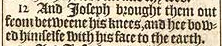 12 And Ioseph brought them out from betweene his knees, and hee bowed himselfe with his face to the earth.