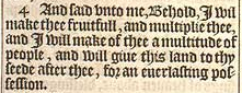 4 Und sagte zu mir 'Siehe, ich werde dich fruchtbar machen un dich vermehren und ich werde aus dir viele Völker machen und werde dieses Land deinen Nachkommen geben als ewigen Beistz.