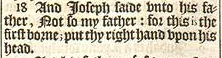 18 And Ioseph saide vnto his father, Not so my father: for this is the first borne; put thy right hand vpon his head.