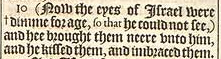 10 (Now the eyes of Israel were +dimme for age, so that he could not see,) and hee brought them neere vnto him, and he kissed them, and imbraced them. [ +Heb. heauy ]