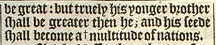 19 And his father refused, and said, I know it, my sonne, I know it: he also shall become a people, and he also shall be great: but truely his yonger brother shall be greater then he; and his seede shall become a +multitude of nations. [ +Hebr: fulnesse. ]