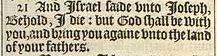 21 And Israel saide vnto Ioseph, Behold, I die: but God shall be with you, and bring you againe vnto the land of your fathers.