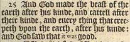 25 And God made the beast of the earth after his kinde, and cattell after their kinde, and euery thing that creepeth vpon the earth, after his kinde: and God saw that it was good.