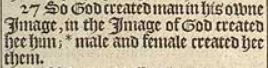 27 So God created man in his owne Image, in the Image of God created hee him; *male and female created hee them.[*Matth.19 4. wisd.2. 23.]