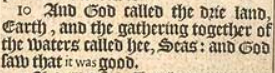 10 And God called the drie land, Earth, and the gathering together of the waters called hee, Seas: and God saw that it was good.