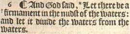 6 ¶ And God said, *Let there be a +firmament in the midst of the waters: and let it diuide the waters from the waters.[*Psal. 136.5. ier.10.12 and 51.15. , +Hebr. Expansion.]