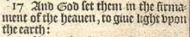 17 And God set them in the firmament of the heauen, to giue light vpon the earth: