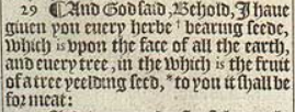 29 ¶ And God said, Behold, I haue giuen you euery herbe +bearing seede, which is vpon the face of all the earth, and euery tree, in the which is the fruit of a tree yeelding seed, *to you it shall be for meat:[+Hebr. feeding seed. , *Chap.9.3.]