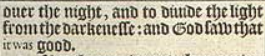 4 And God saw the light, that it was good: and God diuided +the light from the darkenesse. [+Hebr. betweene the light and betweene the darkenesse.]