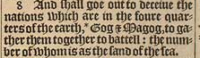 8 And shall goe out to deceiue the nations which are in the foure quarters of the earth, *Gog & Magog, to gather them together to battell: the number of whom is as the sand of the sea.[*Ezek.38. 2.and 39.1.]