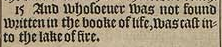 15 And whosoeuer was not found written in the booke of life, was cast into the lake of fire.
