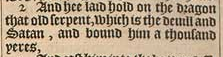 2 And hee laid hold on the dragon that old serpent, which is the deuill and Satan, and bound him a thousand yeres,