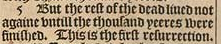 5 But the rest of the dead liued not againe vntill the thousand yeeres were finished. This is the first resurrection.