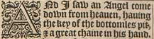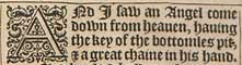 1 And I saw an Angel come down from heauen, hauing the key of the bottomles pit, & a great chaine in his hand.