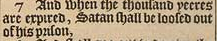 7 And when the thousand yeeres are expired, Satan shall be loosed out of his prison,