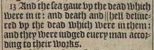 13 And the sea gaue vp the dead which were in it: and death and ||hell deliuered vp the dead which were in them: and they were iudged euery man according to their works. [||Or, hell.]