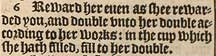 6 Reward her euen as she rewarded you, and double vnto her double according to her works: in the cup which she hath filled, fill to her double.