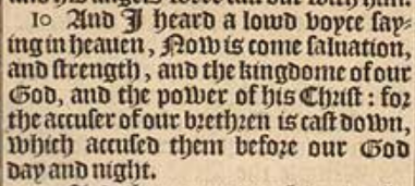 10 And I heard a lowd voyce saying in heauen, Now is come saluation, and strength, and the kingdome of our God, and the power of his Christ: for the accuser of our brethren is cast down, which accused them before our God day and night.