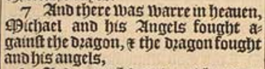 7 And there was warre in heauen, Michael and his Angels fought against the dragon, & the dragon fought and his angels,
