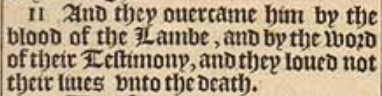 11 And they ouercame him by the blood of the Lambe, and by the word of their Testimony, and they loued not their liues vnto the death.