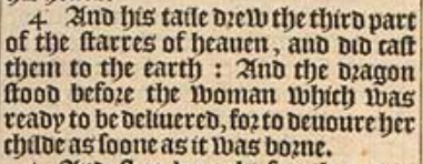 4 And his taile drew the third part of the starres of heauen, and did cast them to the earth: And the dragon stood before the woman which was ready to be deliuered, for to deuoure her childe as soone as it was borne.