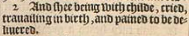 2 And shee being with childe, cried, trauailing in birth, and pained to be deliuered.
