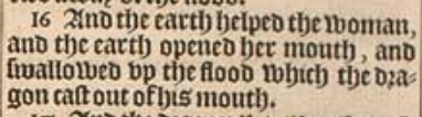 16 And the earth helped the woman, and the earth opened her mouth, and swallowed vp the flood which the dragon cast out of his mouth.