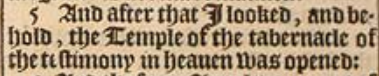 5 And after that I looked, and behold, the Temple of the tabernacle of the testimony in heauen was opened: