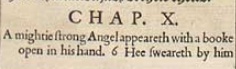 A mightie strong Angel appeareth with a booke open in his hand. 6 Hee sweareth by him that liueth for euer, that there shalbe no more time. 9 Iohn is commaunded to take and eate the booke.