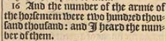 16 And the number of the armie of the horsemen were two hundred thousand thousand: and I heard the number of them.