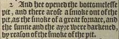 2 And hee opened the bottomelesse pit, and there arose a smoke out of the pit, as the smoke of a great fornace, and the sunne and the ayre were darkened, by reason of the smoke of the pit.