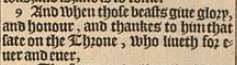 9 And when those beasts giue glory, and honour, and thankes to him that sate on the Throne, who liueth for euer and euer,