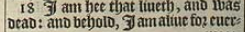 18 I am hee that liueth, and was dead: and behold, I am aliue for euermore, Amen, and haue the keyes of hell and of death.
