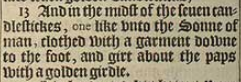 13 And in the midst of the seuen candlestickes, one like vnto the Sonne of man, clothed with a garment downe to the foot, and girt about the paps with a golden girdle.