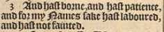 3 And hast borne, and hast patience, and for my Names sake hast laboured, and hast not fainted.