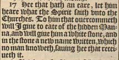 17 Hee that hath an eare, let him heare what the Spirit saith vnto the Churches. To him that ouercommeth will I giue to eate of the hidden Manna, and will giue him a white stone, and in the stone a new name written, which no man knoweth, sauing hee that receiueth it.