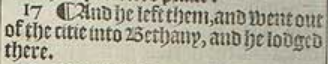 17 ¶ And he left them, and went out of the citie into Bethany, and he lodged there.