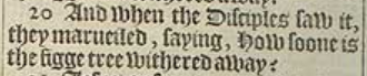 20 And when the Disciples saw it, they marueiled, saying, How soone is the figge tree withered away?