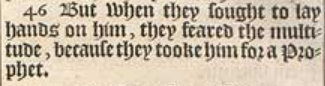 46 But when they sought to lay hands on him, they feared the multitude, because they tooke him for a Prophet.