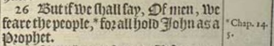 26 But if we shall say, Of men, we feare the people, *for all hold Iohn as a Prophet.[*Chap. 14.5.]