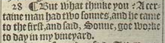 28 ¶ But what thinke you? A certaine man had two sonnes, and he came to the first, and said, Sonne, goe worke to day in my vineyard.