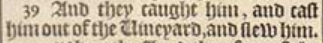 39 And they caught him, and cast him out of the Uineyard, and slew him.