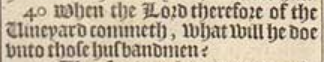 40 When the Lord therefore of the Uineyard commeth, what will he doe vnto those husbandmen?