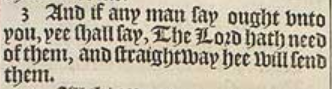 3 And if any man say ought vnto you, yee shall say, The Lord hath need of them, and straightway hee will send them.