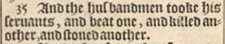 35 And the husbandmen tooke his seruants, and beat one, and killed another, and stoned another.