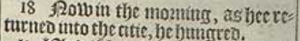 18 Now in the morning, as hee returned into the citie, he hungred.