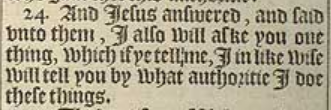 24 And Iesus answered, and said vnto them, I also will aske you one thing, which if ye tell me, I in like wise will tell you by what authoritie I doe these things.