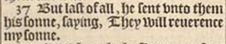 37 But last of all, he sent vnto them his sonne, saying, They will reuerence my sonne.
