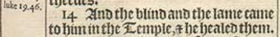 14 And the blind and the lame came to him in the Temple, & he healed them.