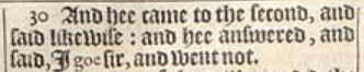 30 And hee came to the second, and said likewise: and hee answered, and said, I goe sir, and went not.
